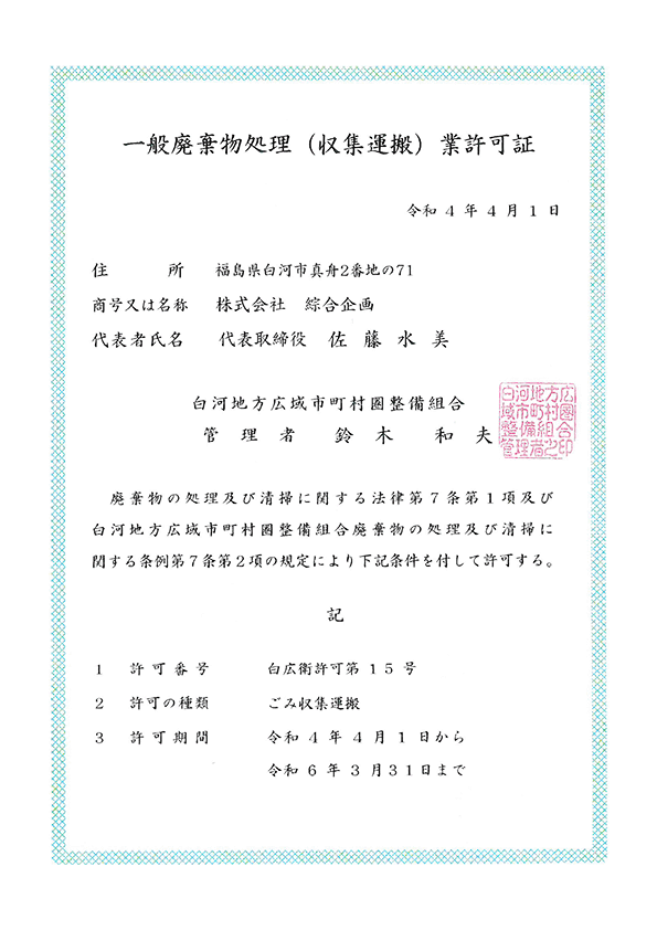 株式会社綜合企画は、これからも美しい自然を保つため、さらに住みよい街への発展を願って、全社員が一丸となり、全身を期して取り組んで参ります。